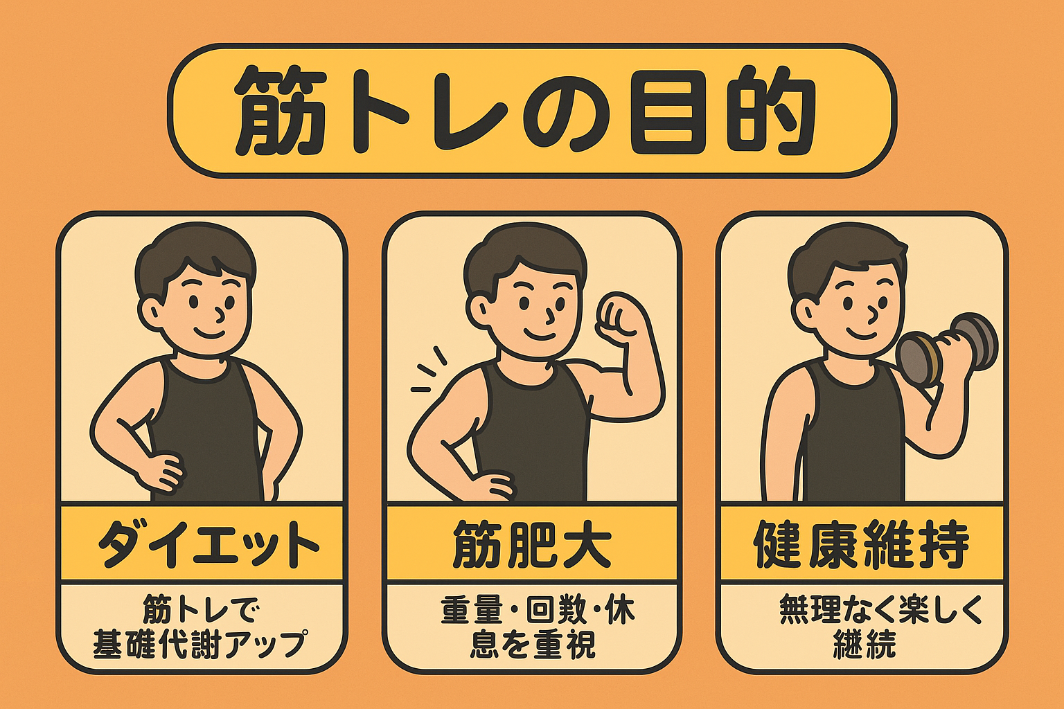 筋トレは、目的や環境に合わせて正しく行えば、誰でも安全に効果を実感できます。この記事では、以下の2つの軸に沿って解説していきます。